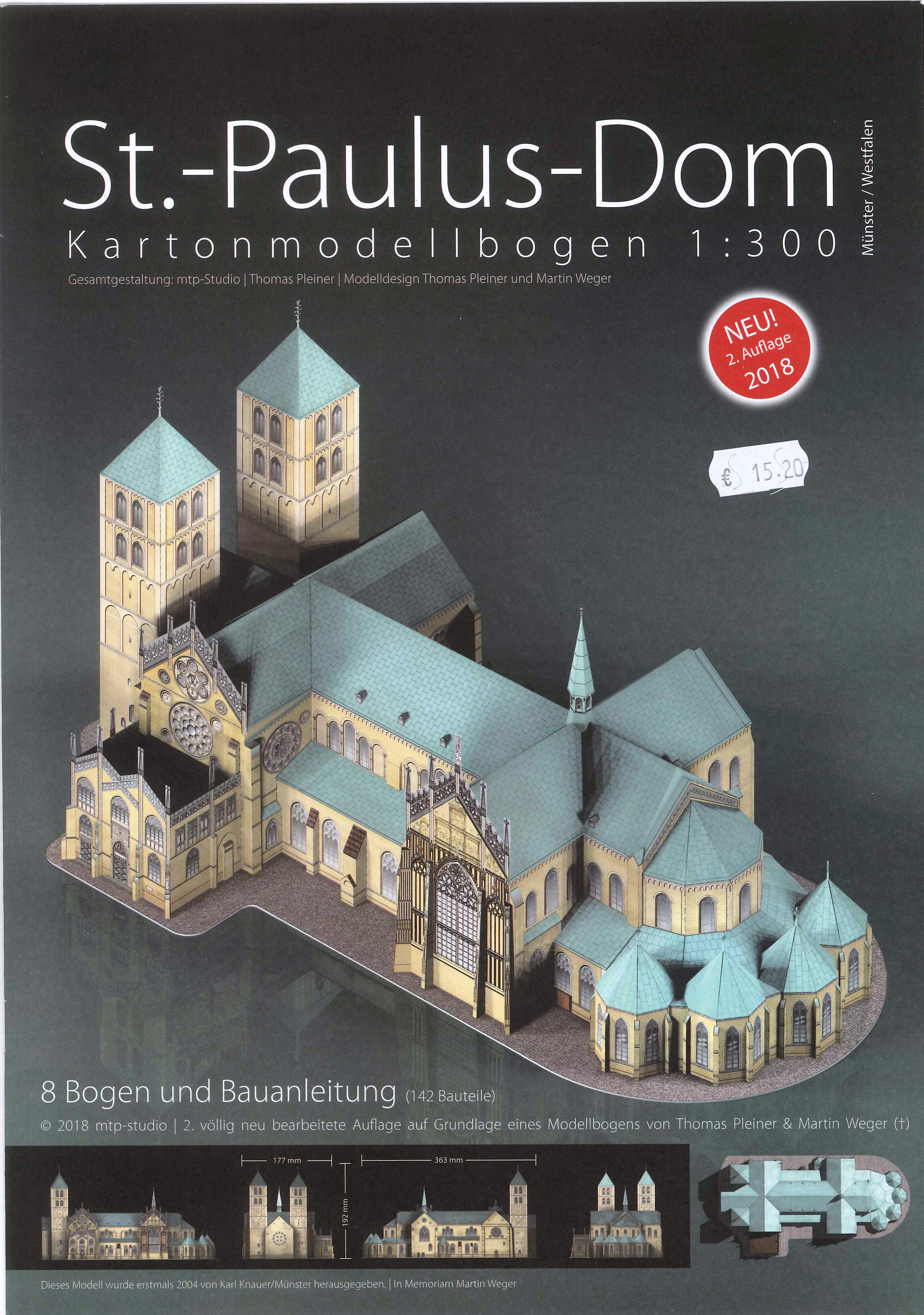 ![]() über mich frühere Monatsbilder Münster im Modell Alter Schützenhof Augustastr. / Ecke Dahlweg St. Paulus Dom Münsters Eisenbahn Gleispläne Publikationen Neuigkeiten Impressum Datenschutzerklärung | 792 Anfang der Missions- und Bautätigkeit Liudgers. 805 Gründung des Bistums Münster. Bischofsweihe Liudgers. Errichtung der ersten Bischofskirche. (Bau I) 1071/1090 Brand des ersten Domes. Errichtung eines neuen Domes südlich des karolingischen Dombaus. (Bau II) 1225 Grundsteinlegung für den heutigen Dom (Bau III). 1264 Weihe des heutigen Domes. 1390/ 1395 Erweiterungsbauten: Kreuzgang, Marienkapelle. 1508/ 1522 Umfangreiche Modernisierungen: Westfassade, Dombibliothek, Umgestaltung der Seitenschiffswände und der Südseite des Ostquerschiffes. 1536/ 1556 Neugestaltung des Dom-Inneren, nach den Zerstörungen der Wiedertäufer: Lettner, Astronomische Uhr, Sakramentshaus, Kreuzkapelle, Kapitelsaal, Skulpturen von Johannes Brabender, Malereien von Ludger und Hermann tom Ring. 1620/ 1700 Neue Bau- und Bildwerke der Barockzeit für den Dom: Altäre, Grabdenkmäler und Epitaphien, Galensche Kapellen, Neu-Ausschmückung des Hochchores, Skulpturen aus der Werkstatt der Bildhauerfamilie Gröninger. 1941/ 1945 Weitgehende Zerstörung des Domes. 1946/ 1956 Wiederaufbau des Domes. 1981 Errichtung der Domkammer.